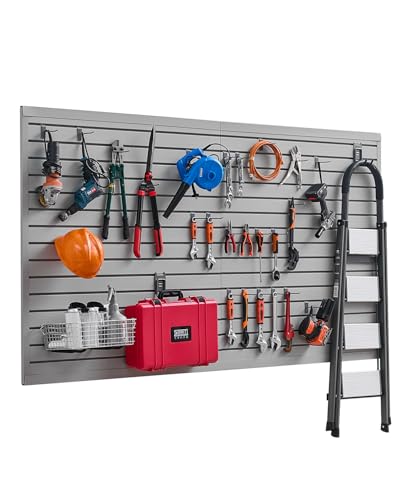 VEVOR Panneau à Lattes Mural Garage, 1225 x 645 mm, Panneau Rangement Outils en PVC avec Conception Modulaire, Porte-outils Muraux pour Affichage, Organisation, Stockage, Atelier, Artisanal, Gris