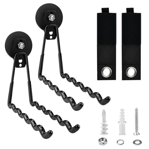 Lot de 12 crochets de garage muraux avec 2 sangles de rangement pour cordon d'extension, cintres robustes pour organisateur utilitaire, supports muraux pour outils de jardin, pelouse, échelles, vélo