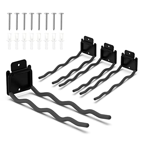 HUHOLE Lot de 4 crochets muraux de garage robustes en forme de vague, 30,5 cm, crochets utilitaires de rangement de garage, cintres multi-outils pour suspendre vélo, chaise, échelle, outils de jardin
