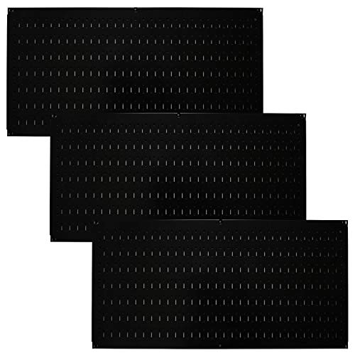 Wall Control Lot de 3 panneaux muraux horizontaux en métal noir 40,6 cm de haut x 81,3 cm de large pour rangement d'outils de maison et de garage (panneau perforé)