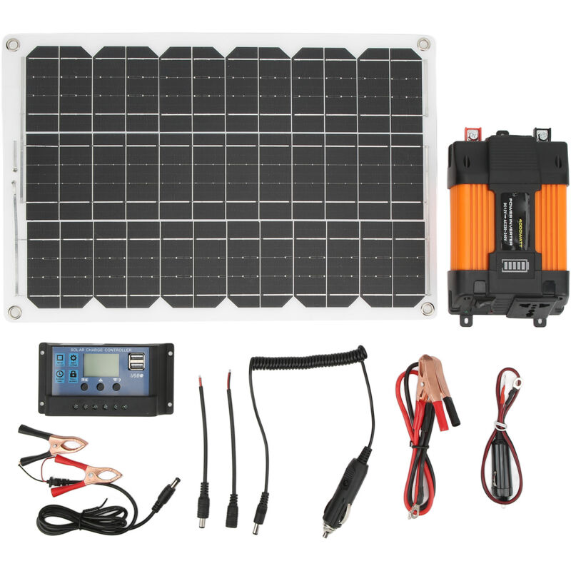 Kit de générateur solaire avec panneaux solaires, onduleur combiné DC 12V vers AC 220V, système d'alimentation solaire pour les voyages en extérieur