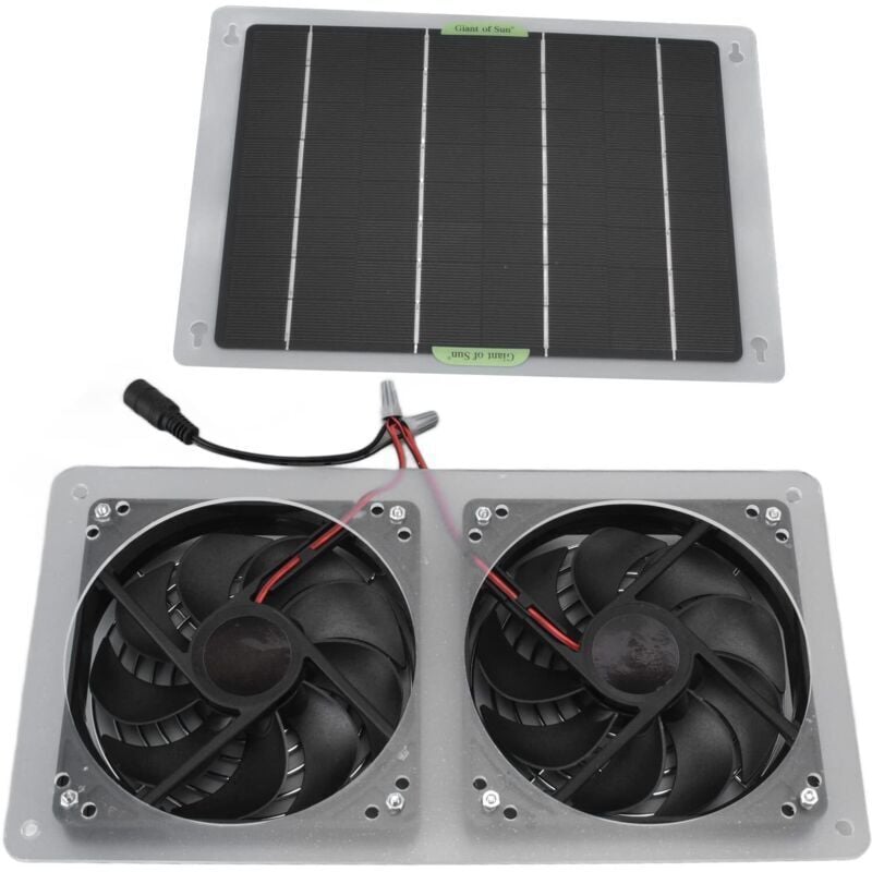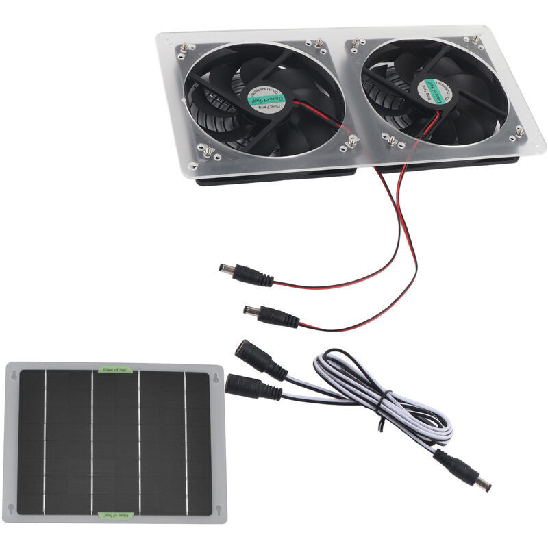 Decdeal Kit de ventilateur de panneau solaire 100W 12V, étanche, Portable, double ventilateur d'extraction, ensemble de panneaux solaires pour serre