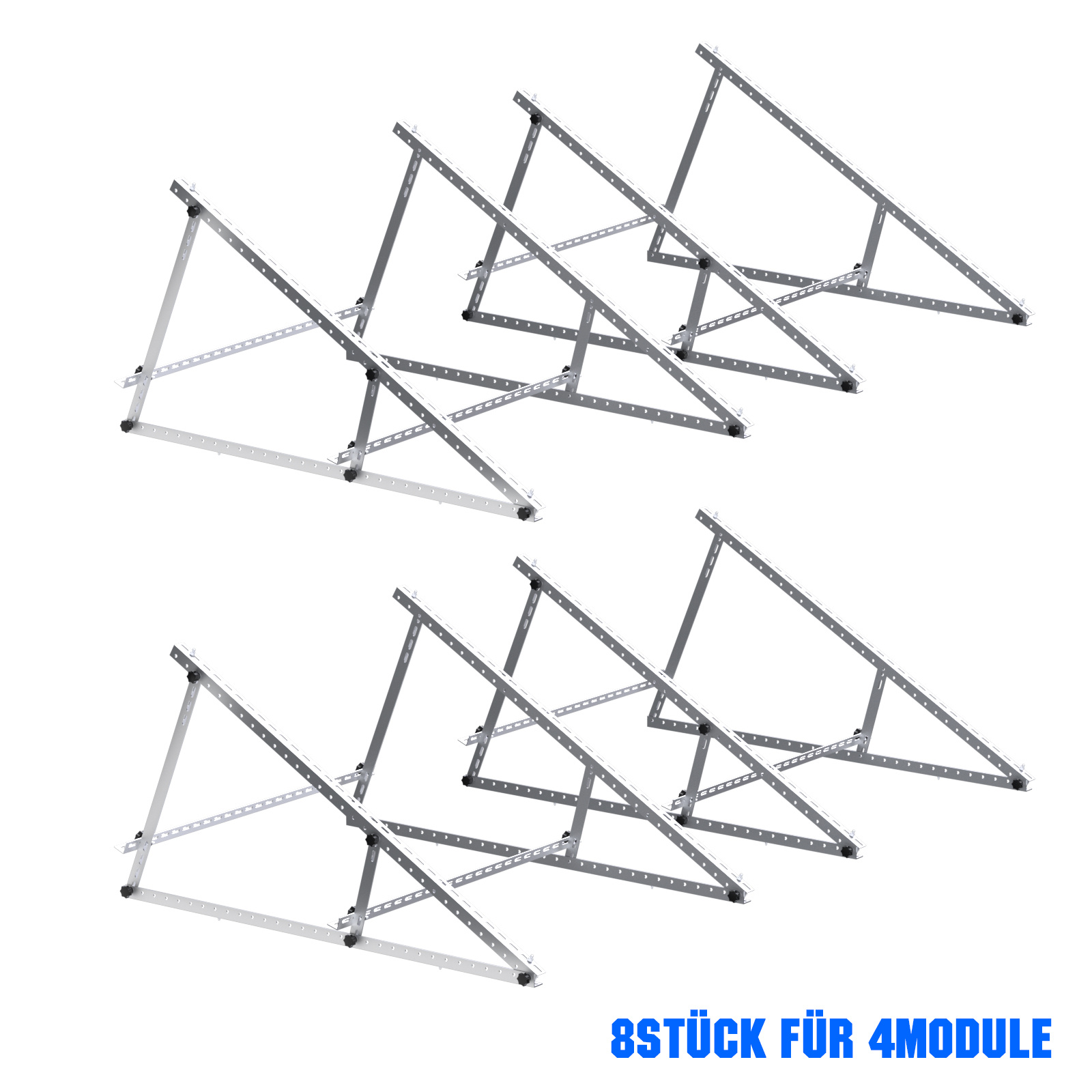 Support pour panneaux solaires 118 cm (46 pouces), 8 pièces, pour toit plat, destiné à 4 modules solaires (centrale solaire de balcon). Inclinaison 0°-90°, fixation pour panneaux solaires, 0 % de TVA