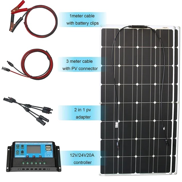 Kit de panneaux solaires flexibles, sortie 12V, Convient pour bateau, voiture, camping-car, 200w kit solaire