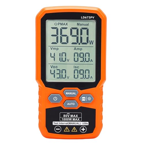 Luocute Testeur de Panneaux Solaires, Multimètre Photovoltaïque MPPT 5 W à 1000 W avec Grand écran LCD pour Test PV de Courant de Court-Circuit de Tension en Circuit Ouvert, Pièces