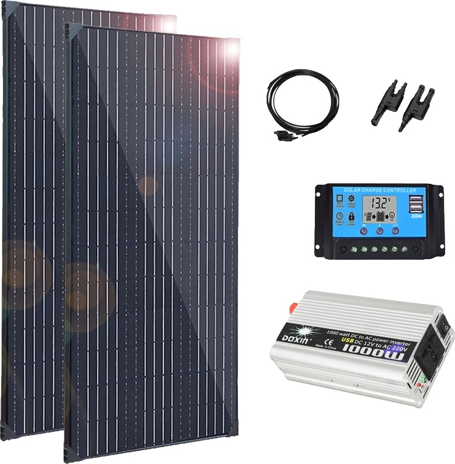 Solarway® Bloc d'alimentation électrique complet pour balcon 1000 W - Onduleur de 1000 W - Kit complet - Panneaux solaires de 500 W et accessoires