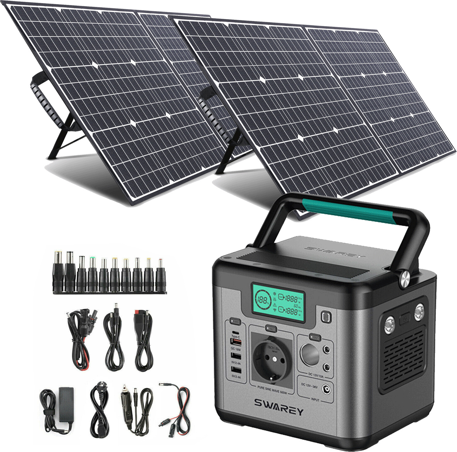 SWAREY S500 Pro 500W(1000W peak) centrale électrique portable 518Wh générateur solaire avec 2x 100W panneaux solaires pour camping/urgence/maison