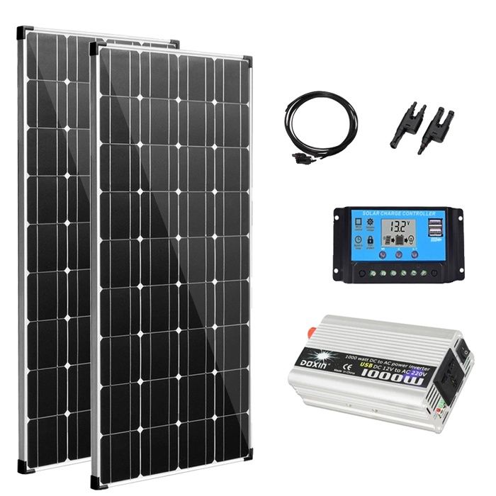 PANNEAU SOLAIRE - WOODOURS - Kit panneaux solaires 1000W 12V-220V centrale électrique maison camping – kit onduleur 60A
