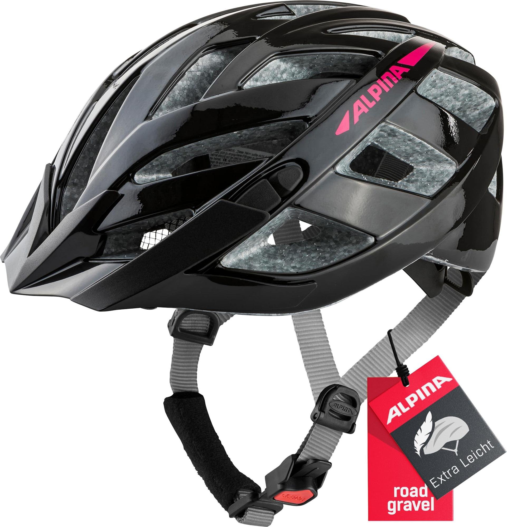 ALPINA PANOMA 3.0, Black-Pink Gloss, 52-57 cm, Casque de Cyclisme de Tourisme optimalement ventilé avec lumière LED optionnelle pour Adultes.
