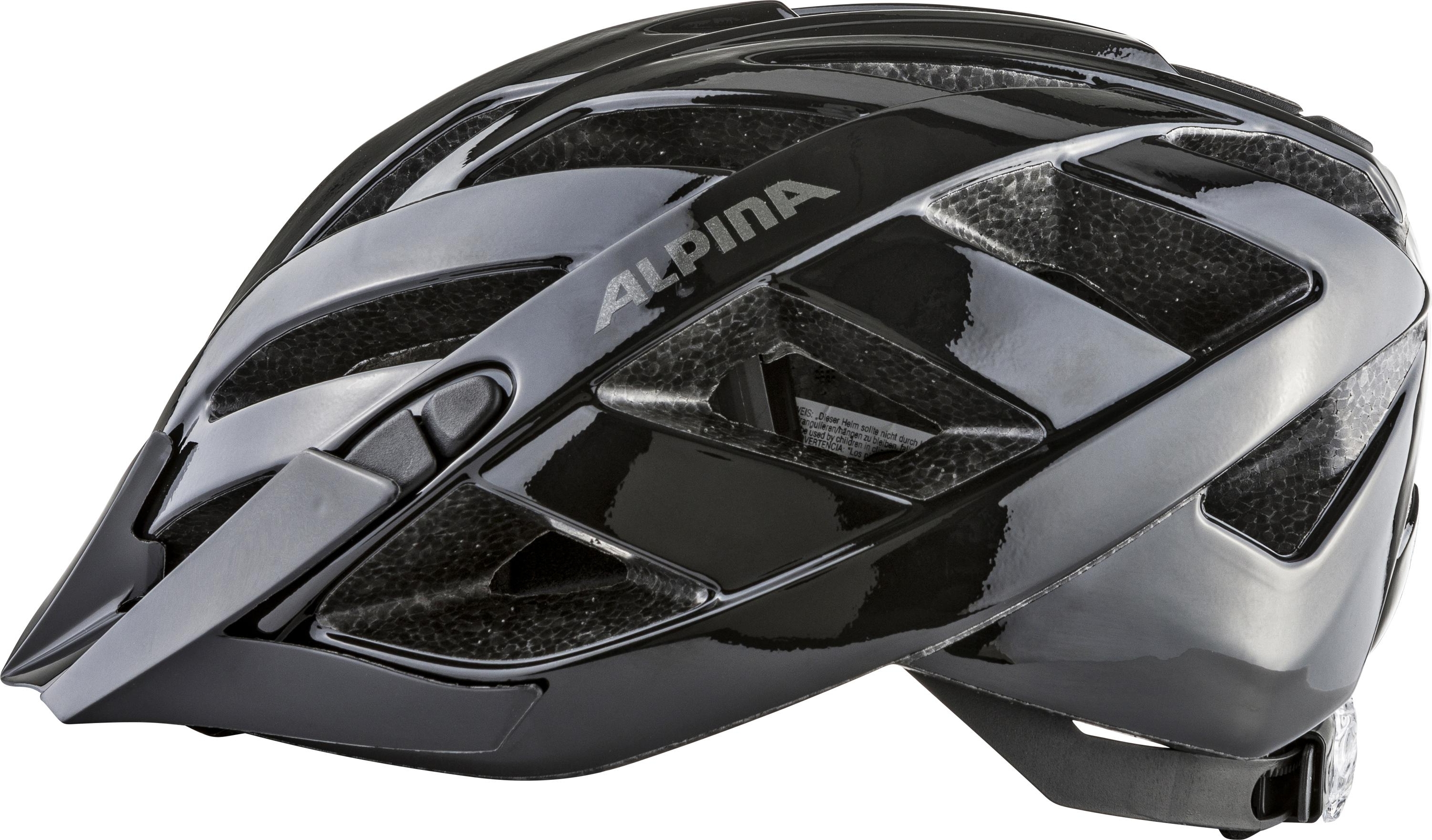 ALPINA PANOMA Classic, Black Gloss, 56-59 cm, Casque de vélo de Tourisme optimalement ventilé avec lumière LED optionnelle pour Adultes