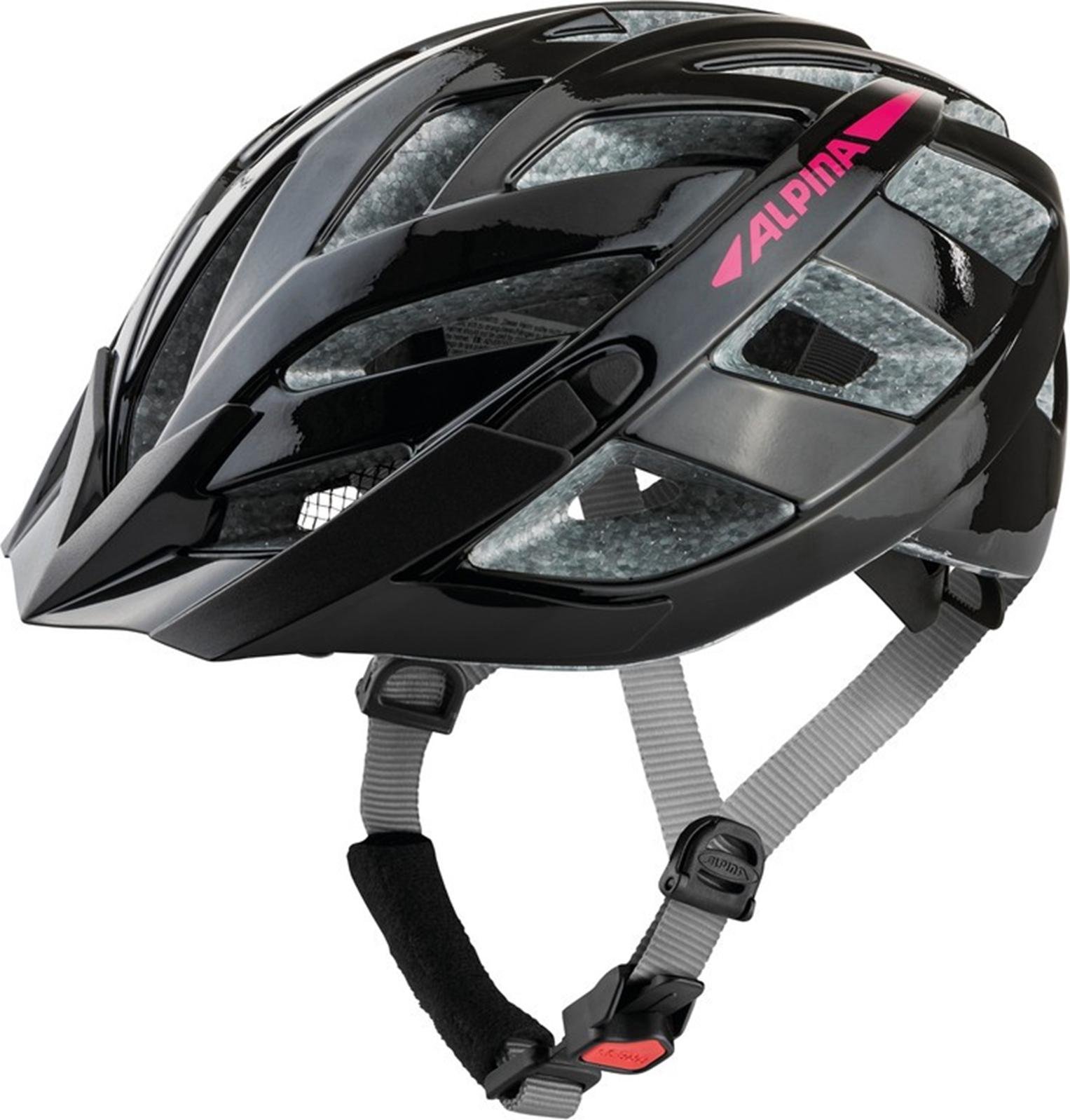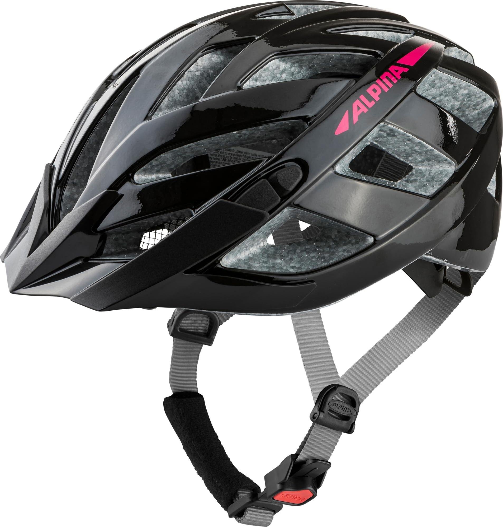 ALPINA PANOMA 3.0, Black-Pink Gloss, 56-59 cm, Casque de Cyclisme de Tourisme optimalement ventilé avec lumière LED optionnelle pour Adultes.