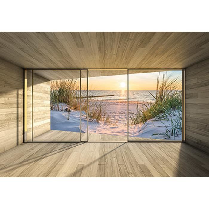 Papier Peint Intissé 3D Panoramique Plage Mer 254x184 cm Chambre Salon Photo Non Tissé Muraux Trompe loeil
