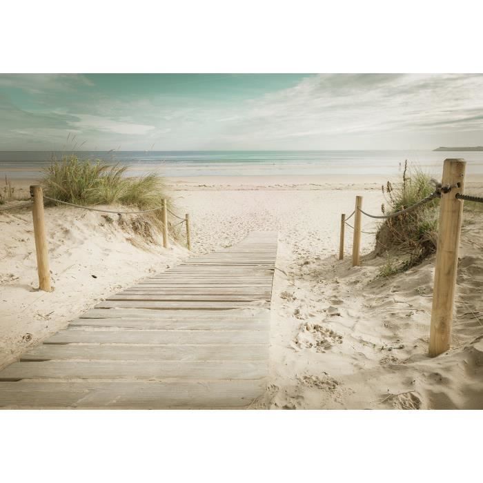 Papier Peint Intissé 3D Plage Mer 312x219 cm Panoramique Chambre Salon Photo Non Tissé Muraux Trompe loeil
