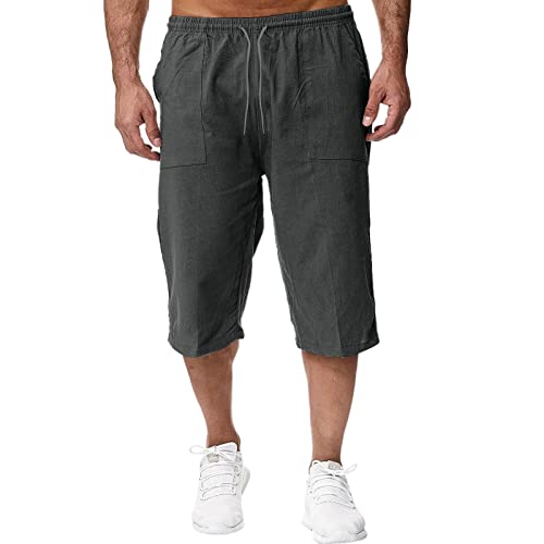 Bastwahl Short Travail Homme, 2025 Short Lin et Bermuda Homme 3/4 Long D'Été Pantacourt Coton, pour La Plage, Le Yoga, Le Jogging, Pantalon Taille Elastique Décontracté Gris XL