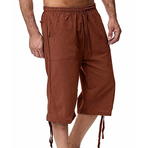 Bastwahl Yoga Pants, 2025 Short Lin et Bermuda Homme 3/4 Long D'Été Pantacourt Coton, pour La Plage, Le Yoga, Le Jogging, Pantalon Taille Elastique Décontracté Orange M