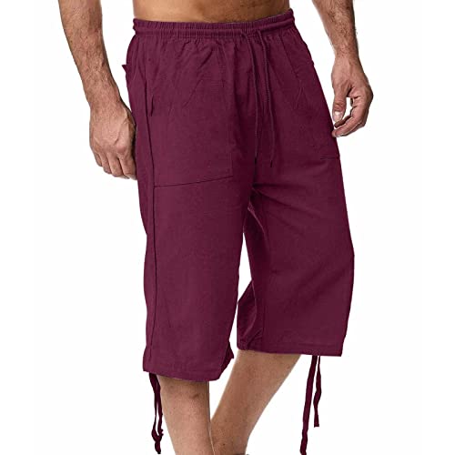 Bastwahl Sportswear Homme, 2025 Short Lin et Bermuda Homme 3/4 Long D'Été Pantacourt Coton, pour La Plage, Le Yoga, Le Jogging, Pantalon Taille Elastique Décontracté Rouge 3XL