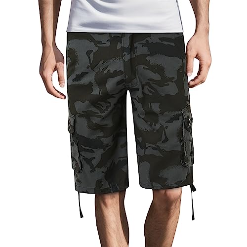 Bastwahl Pantacourt Homme Été Cargo Été Coton Lâche Grande Taille Bermudas Shorts en Plein Militaire Slim Fit Camouflage Plage Sport Zippée avec Poche Couleur Pure Pantalon Pas Cher