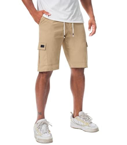 Cargo Short Homme, Pantacourt Homme Cargo avec Poches Multiples Taille Élastique Classique Relaxed Fit Pantalon en Coton Léger Court Haute Utilité Grande Capacité De Rangement