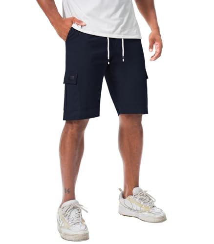 Short Cargo Homme Coton, Pantacourt Homme Sport avec Poches Multiples Taille Élastique Classique Relaxed Fit Short Eté Court Pantalon Léger Décontracté pour Sorties, Loisirs Extérieurs