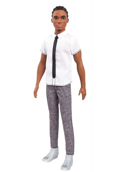 Fashionistas poupée Mannequin Ken #10 Brun avec Chemise à Manches Courtes Blanche, Cravate, Pantalon Gris, Chaussures Blanches, Jouet pour Enfant,