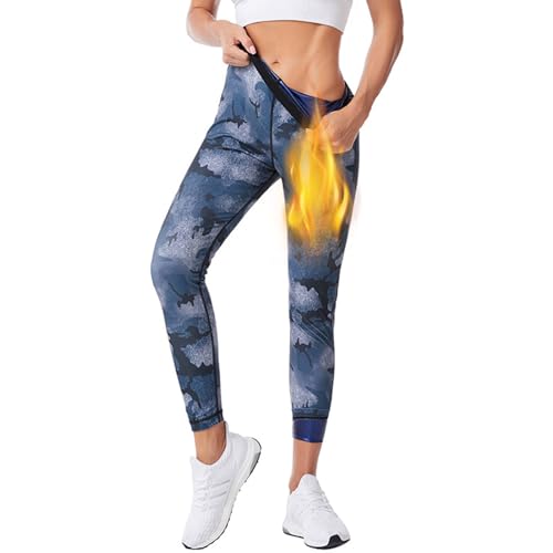 Weyot Pantalon De Sudation, Short De Sudation Homme, Leggings Sudation Amincissante, Legging De Sport Taille Haute pour Accélérer Transpiration, Vêtements De Sudation, L-XL,Blue