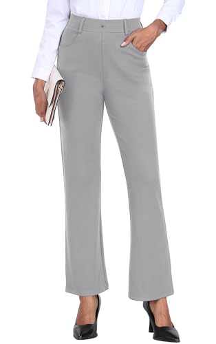 GRECERELLE Pantalon pour femme extensible Pantalon de bureau Pantalon de yoga Taille élastique Pantalon droit décontracté Pantalon de travail pour femme UK Pantalon de yoga avec poches, gris clair, M