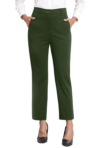 GRECERELLE Pantalon pour femme extensible Pantalon de bureau Pantalon de yoga Taille élastique Pantalon droit décontracté Pantalon de travail pour femme UK Pantalon de yoga avec poches, vert militaire