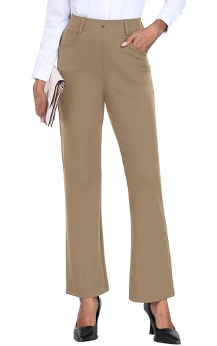 GRECERELLE Pantalon pour femme extensible Pantalon de bureau Pantalon de yoga Taille élastique Pantalon droit décontracté Pantalon de travail pour femme UK Pantalon de yoga avec poches, kaki, S