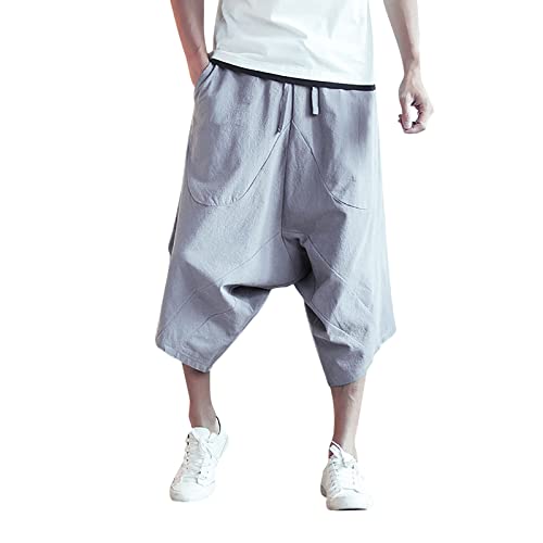 Pantalon En Coton Lin Pour Homme - Pantalon Lin Homme Pantalons pour homme pantalons courts à jambes larges été Pantalons de style national japonais Pantalons de plage de grande taille pour hommes