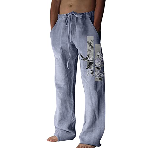 Pantalon Homme - Pantalon En Coton Lin Pour Homme Pantalon d'été décontracté homme coupe ample imprimé confortable respirant léger pour usage quotidien activités de plein air et sports avec t-shirts