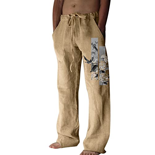 Générique Pantalon en Coton Lin pour Homme - Pantalon Beige Homme Pantalon de Jogging pour Hommes Bas Ouvert Jambe Droite Coupe Ample décontracté Pantalon de Course de Sport avec Poches
