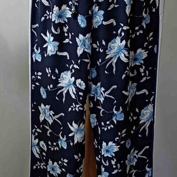 Pantalon Fluide Femme,Sarouel Hippie Femme Baggy Boho Patchwork Motif Ethnique Jambe Large Stretch Smocké Taille Haute Pantalon De Salon Été Taille Plus Pantalon De Yoga Court En Lin Mince,Bleu,5