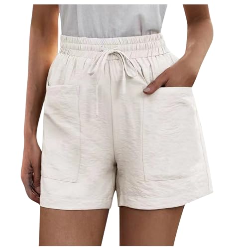 Bermuda Femme, Short Ete Femme Pantalon d'été décontracté pour Femme avec Cordon de Serrage et Taille élastique Short Confortable avec Poches (Beige S)