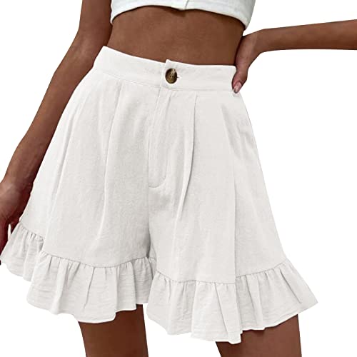 Bermuda Femme Ete, Short Femme Short Ample Taille Haute en Lin Style pour Femme Pantalon d'été décontracté à Jambes Larges Couleur Unie Confortable (White XXXL)