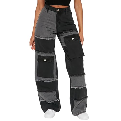 IQYU Jean Bootcut pour femme extensible : jean Y2K taille basse, pantalon évasé pour femme, jeans 70 impacts, jeans baggy, pantalon cargo long boyfriend, jean grande taille, coupe droite, coupe large
