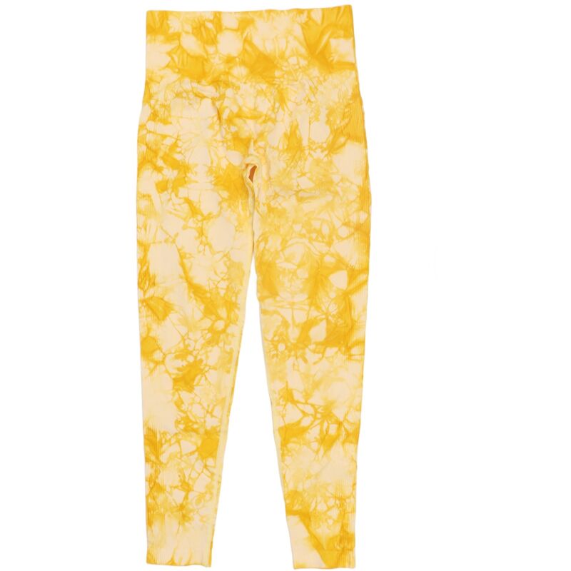 Pantalon Yoga Femme Taille Haute Imprimé Tie Dye Jaune, Effet Fessier Galbé, Taille L, Pour Running Fitness Étirement
