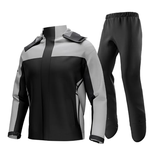 Domary Combinaison de Pluie pour Moto, Homme et Femme, Veste et Pantalon avec Sac de Rangement, en Polyester Imperméable Enduit TPU, Fermeture éclair Intégrale, Capuche Amovibl (XXXL)