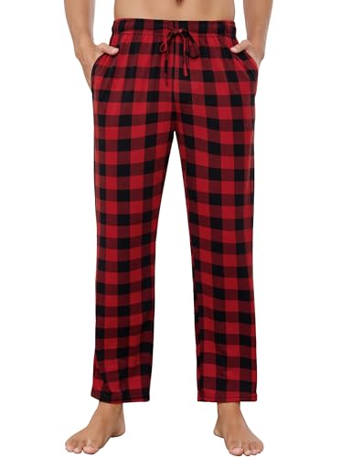 Wikoan Pantalon de Pyjama Homme Long Léger Bas de Pyjama à Carreaux Vêtements de Nuit & de Détente Maison Pantalon Pyjamas Hiver Rouge/Noir M