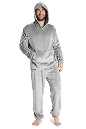 CityComfort Pyjama Homme, Ensemble De Pyjamas en Polaire Douce avec Pantalon Taille Élastique Et Pull à Capuche en Pilou Chaud, Idée Cadeau Ado ou Adulte (Gris Clair, 2XL)