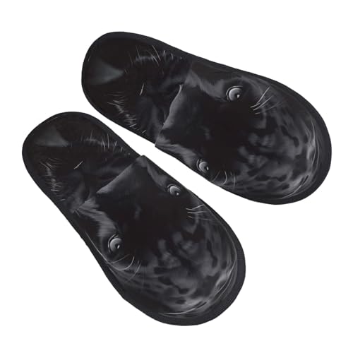 BONDIJ Chaussons d'intérieur et d'extérieur en peluche douce à enfiler pour femme Motif panthère, Noir , Taille unique
