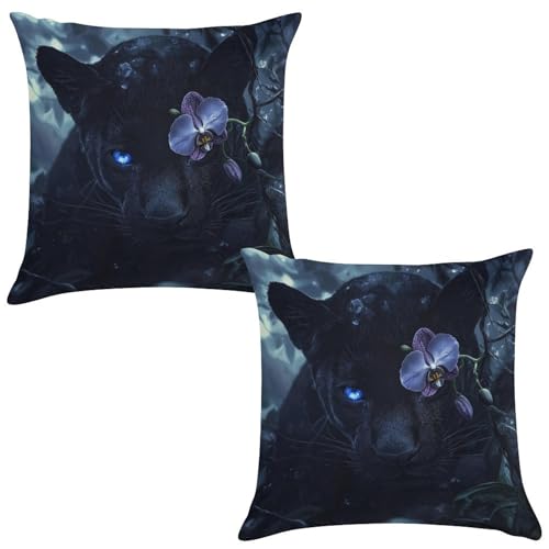 Lot de 2 Housse de Coussin Exterieur Impermeable La Panthère noire Housse Coussin Moderne Peluche courte Taie d'oreiller pour Canapé Patio Extérieur Jardin Salon canapé Décor Coussin, 45x45 cm Y-595