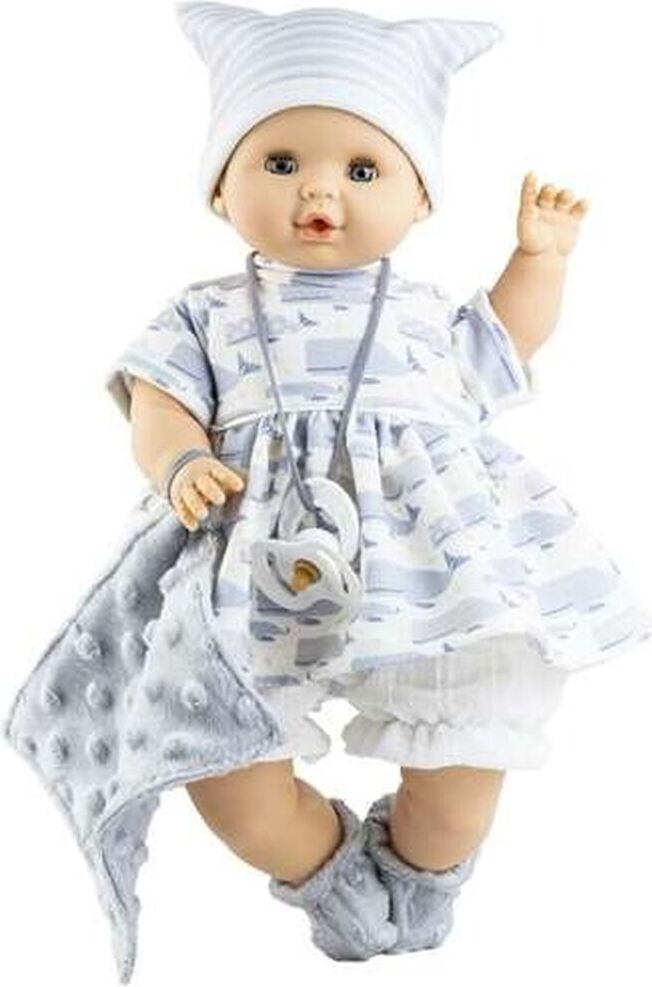 Paola Reina Poupée bébé fille Doudou yeux bleus 42cm vinyle