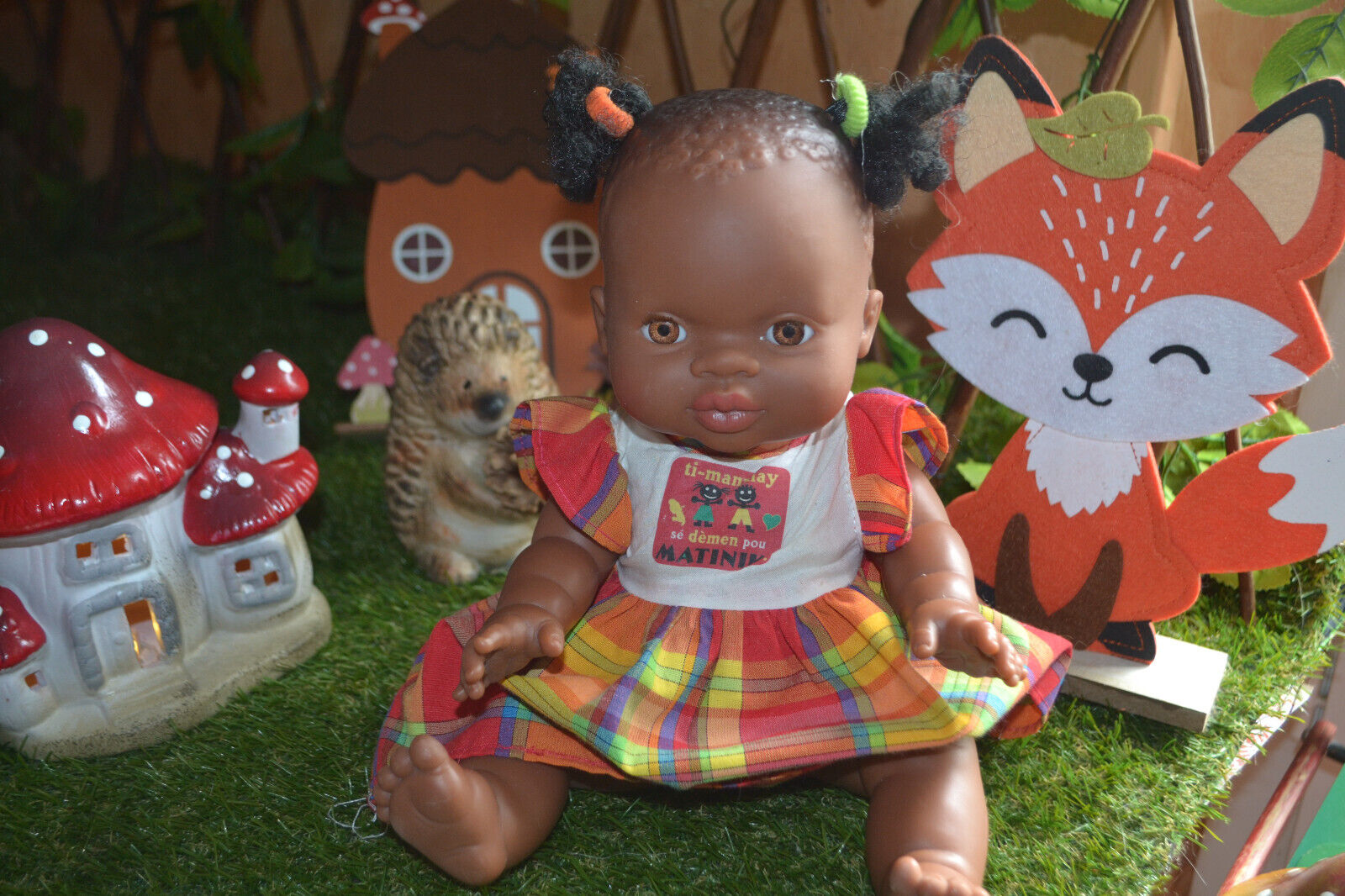 poupee neuve paola reina 35 cm coloree en madras numeros derriere la tete