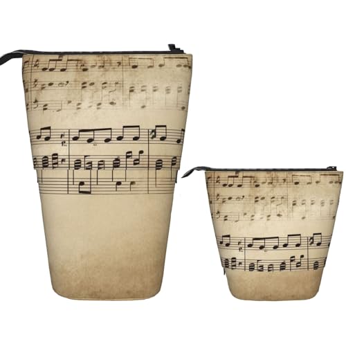 LHBWCVN Trousse à crayons télescopique avec notes de musique sur vieux papier - Trousse à crayons portable - Pour homme et femme - Pour voyage, pièces de monnaie