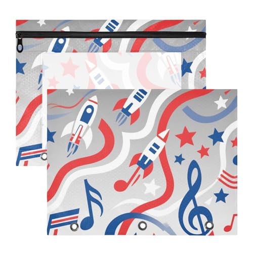 siphylline Lot de 2 trousses à crayons portables pour papier A4, lettres et fournitures artistiques pour étudiants, musique, rouge, bleu, blanc