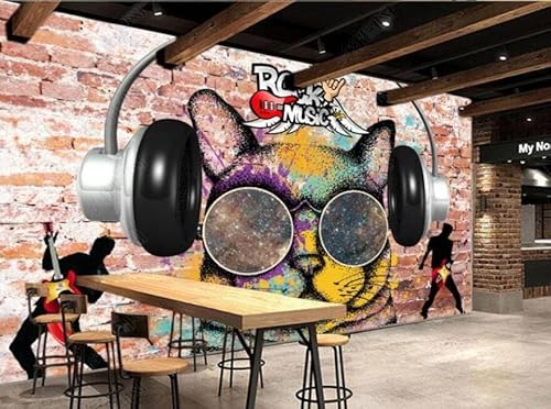 Murale 3d photo papier peint rétro nostalgique musique chat doodle bar décor à la maison salon papier peint * 350cmx256cm(137.8x100.8inch)