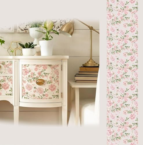 Funlife UV DTF transfert pour meuble Fleurs aquarelle, Roses de printemps adhesif pour meuble Décoration vintage, Imperméable brillant Salon chambre placard bibliothèque papier transfert 29X135CM