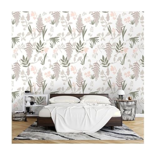 Papier Peint Fleur Beige et blanc Vintage Papier Peint Feuilles Tropicales Papier Adhésif Stickers Meuble Vinyle pour Chambre Armoire Tiroirs, Papier Peint Adhesif Decoratif Chambre Salon 01(44x300 cm