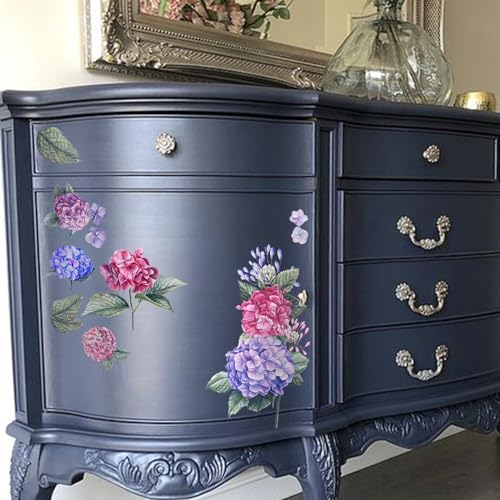 Funlife UV DTF transfert pour meuble Fleurs aquarelle, Hortensia aquarelle adhesif pour meuble Décoration vintage, Imperméable brillant Salon chambre placard bibliothèque papier transfert 29X58CM