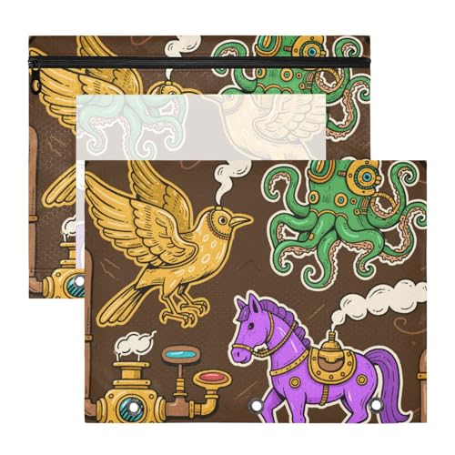 KLL Lot de 2 trousses à crayons à 3 trous pour lettres en papier A4 - Fournitures de salle de classe - Autocollant de dessin animé - Pipe à eau - Marron